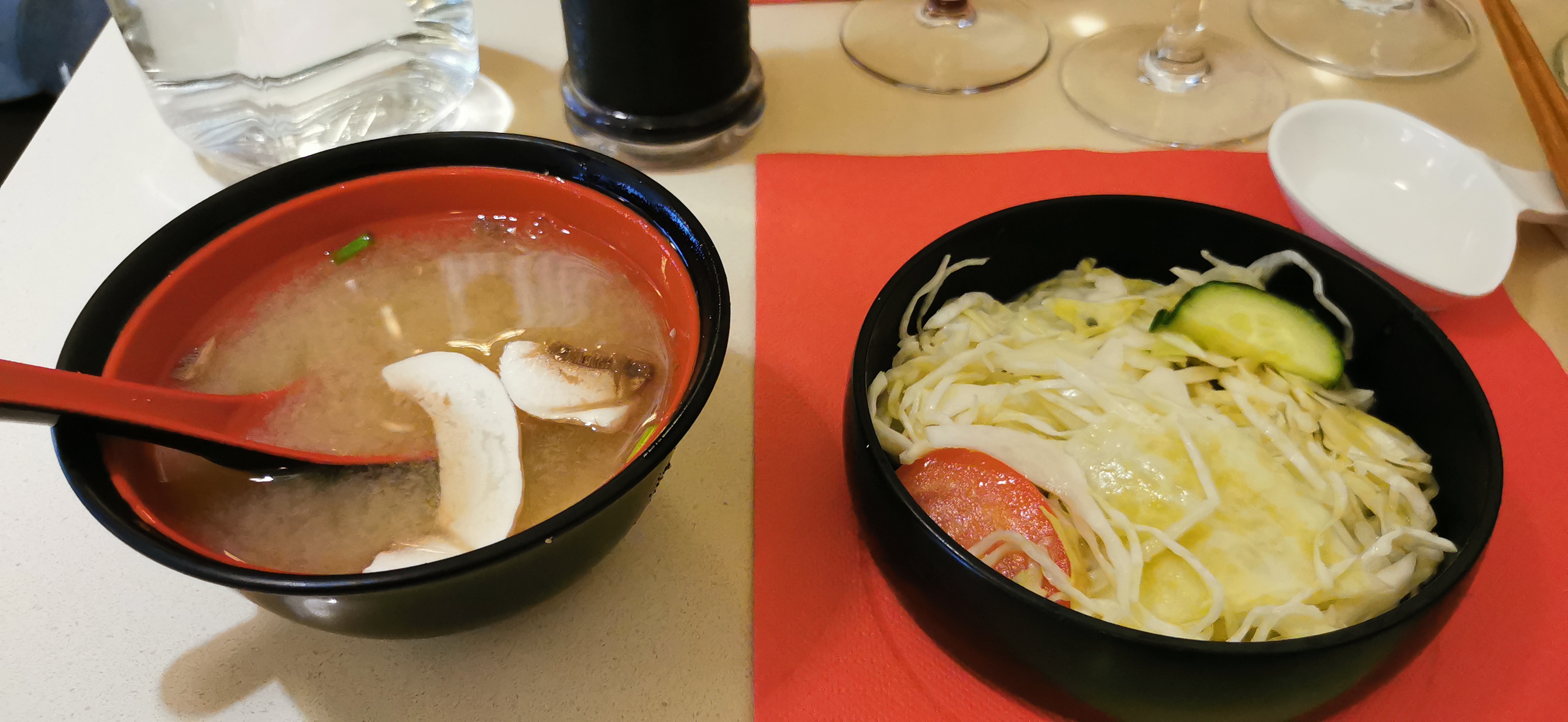 Posté le 19/12/2017 à 19:15"Seul restaurant japonais du centre ville ce qui se ressent sur les prix. 16€ un chirachi, c'est le tarif des grandes chaines type Sushi shop, moins des japonais de quartier. L'accueil est froid et peu aimable, pas un sourire de la patronne. Un point important à revoir. Les quantités sont correctes, sans plus. En terme de plaisir gustatif, j'ai connu mieux, c'est assez bon sauf la soupe Miso qui avait une couleur brune et un goût de fond de casserole brûlée (cf photo). Par ailleurs, à aucun moment on ne m'a demandé e type de sauce souhaitée! Bref, il serait bien de revoir la qualité du service!"