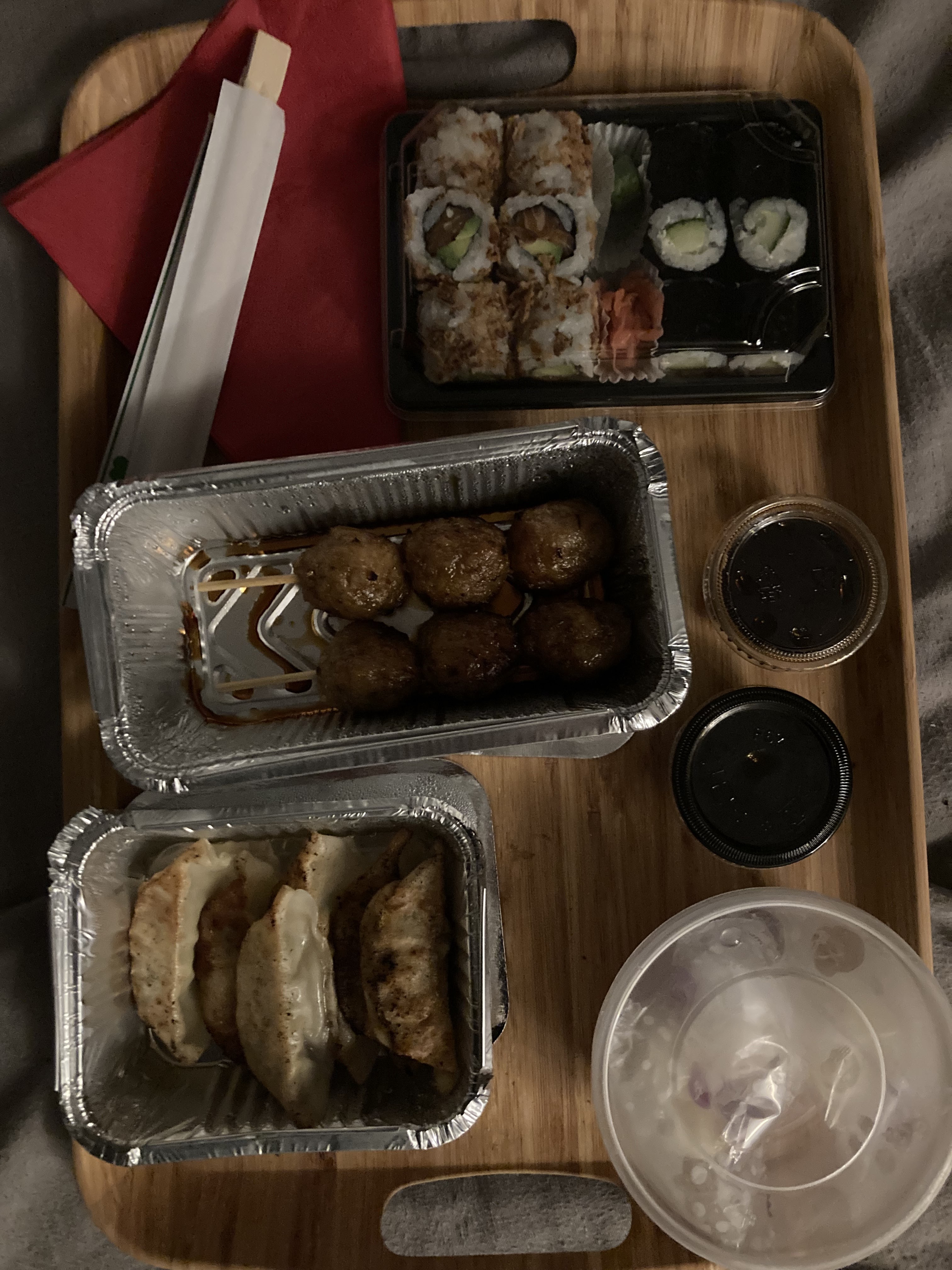 Posté le 12/12/2022 à 13:56"Très bon , très copieux . Joli assortiment sushis Maki.Service rapide , aimable et agréable. Brochettes excellentes."