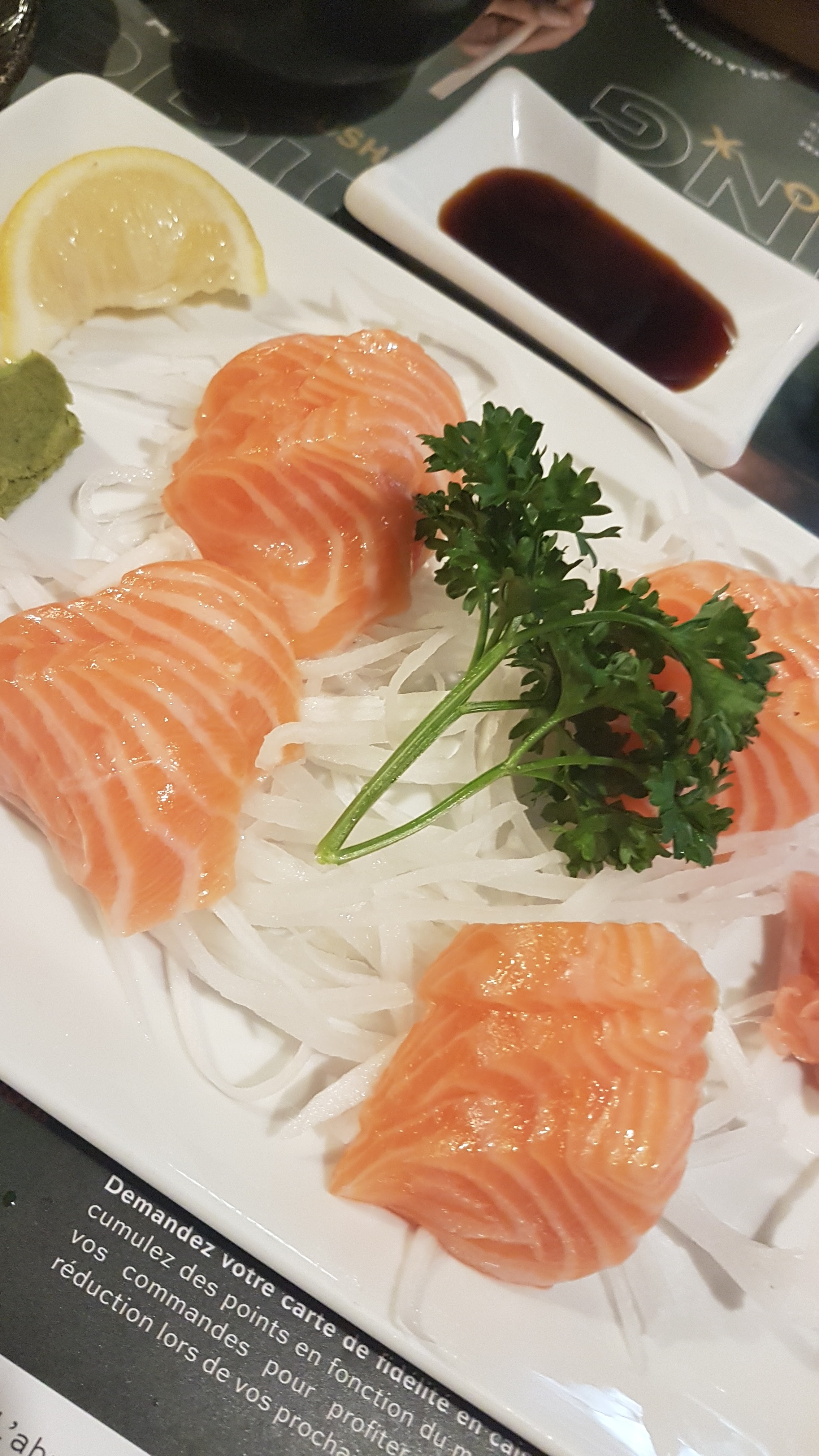 Posté le 22/05/2022 à 18:17"L'accueil à revoir .. on arrive nous sommes les premiers clients, personne vient nous accueillir alors qu'on nous a aperçu on est obligé de venir jusqu'au bar, pas un sourire juste qu'ils étaient polie mais pour moi le sourire est important. Niveau plats ça allait mais j'ai vu mieux j'ai juste trouvé dommage qu'il y avait que du saumon dans les partages duo.. le Wasabi n'avais pas l'air d'être récent.. et pour la sauce soja sucrée n'avait pas du tout un goût sucré ce n'était pas bon.. ça été une expérience ^^ mais je ne reviendrai pas une deuxième fois"