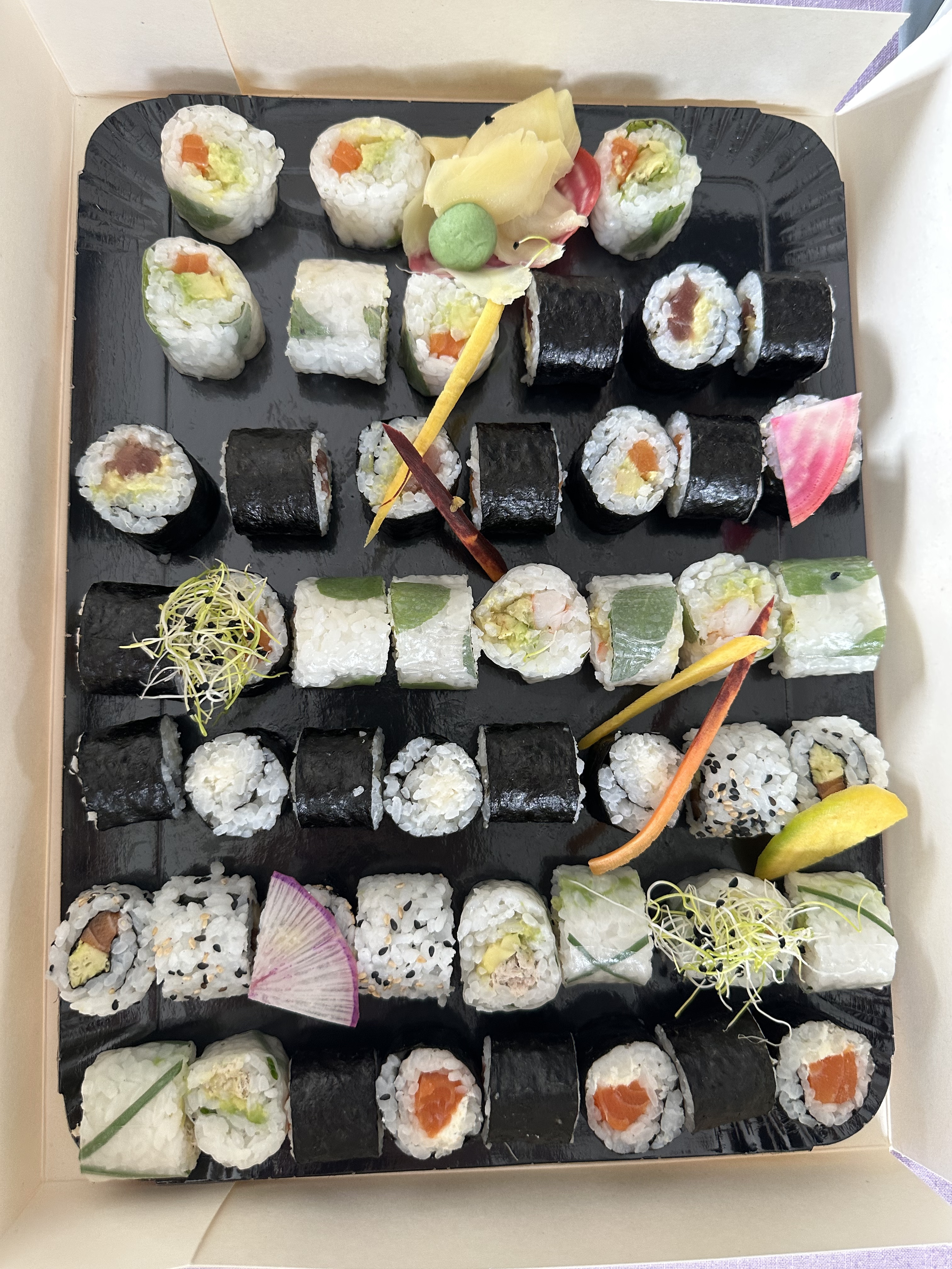 Posté le 29/02/2024 à 13:27"Magnifique plateau de sushis à emporter, excellents sushis, et excellents wasabi et gimgembre ! 😋 Merci beaucoup, je recommande 10000x ! 🍱"