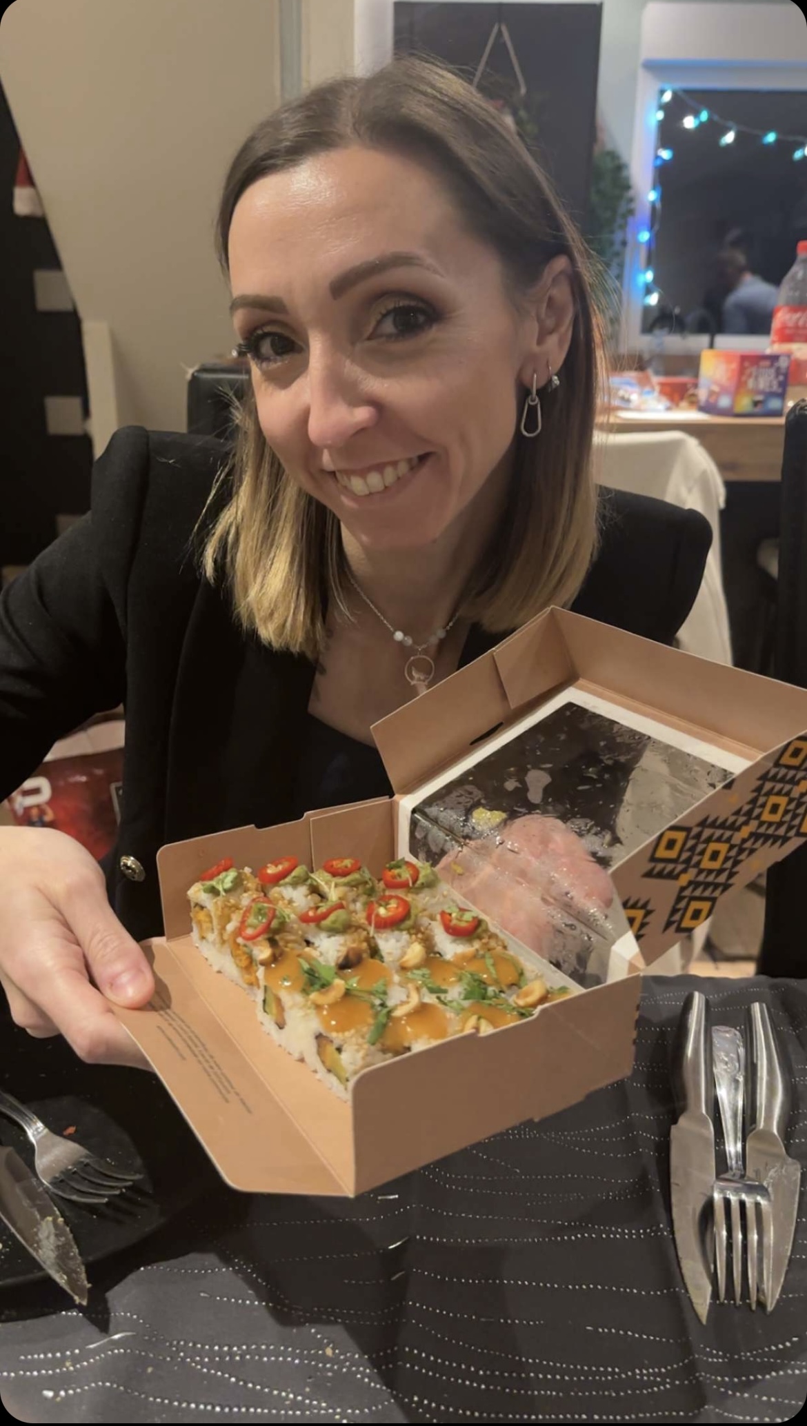 Posté le 03/01/2024 à 10:05"J’ai passé une commande via l’application pour le repas du réveillon de l’an et j’ai été hyper satisfaite. J’avais commandé la box « côté California » et la box « lunch nikkei » c’était vraiment très bon et bien présenté comme sur les photos, les saveurs étaient originales et tout le monde a adoré je reviendrais sans hésiter."