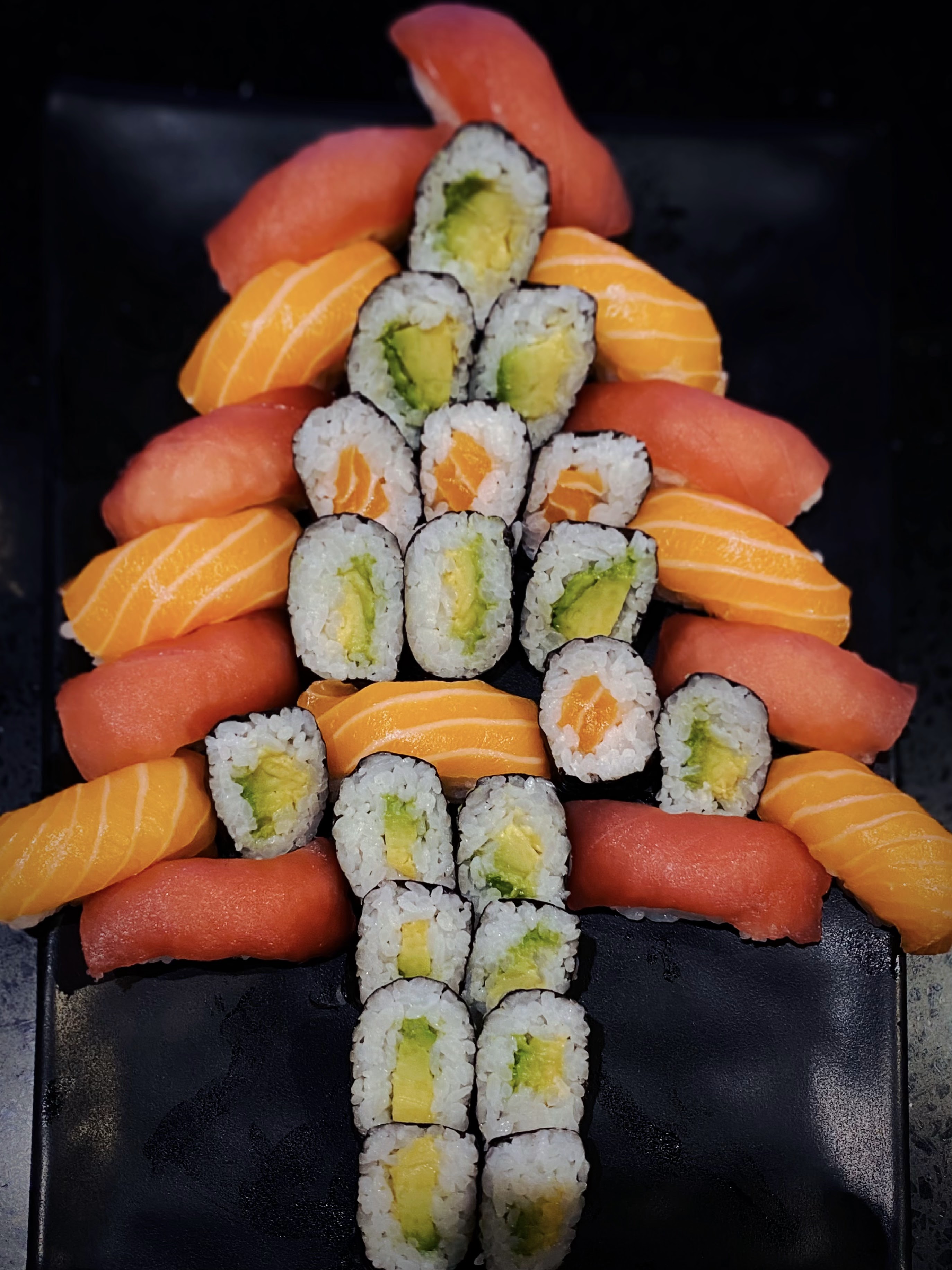 Sushis, makis et brochette servis sur commande. Tout est délicieux !