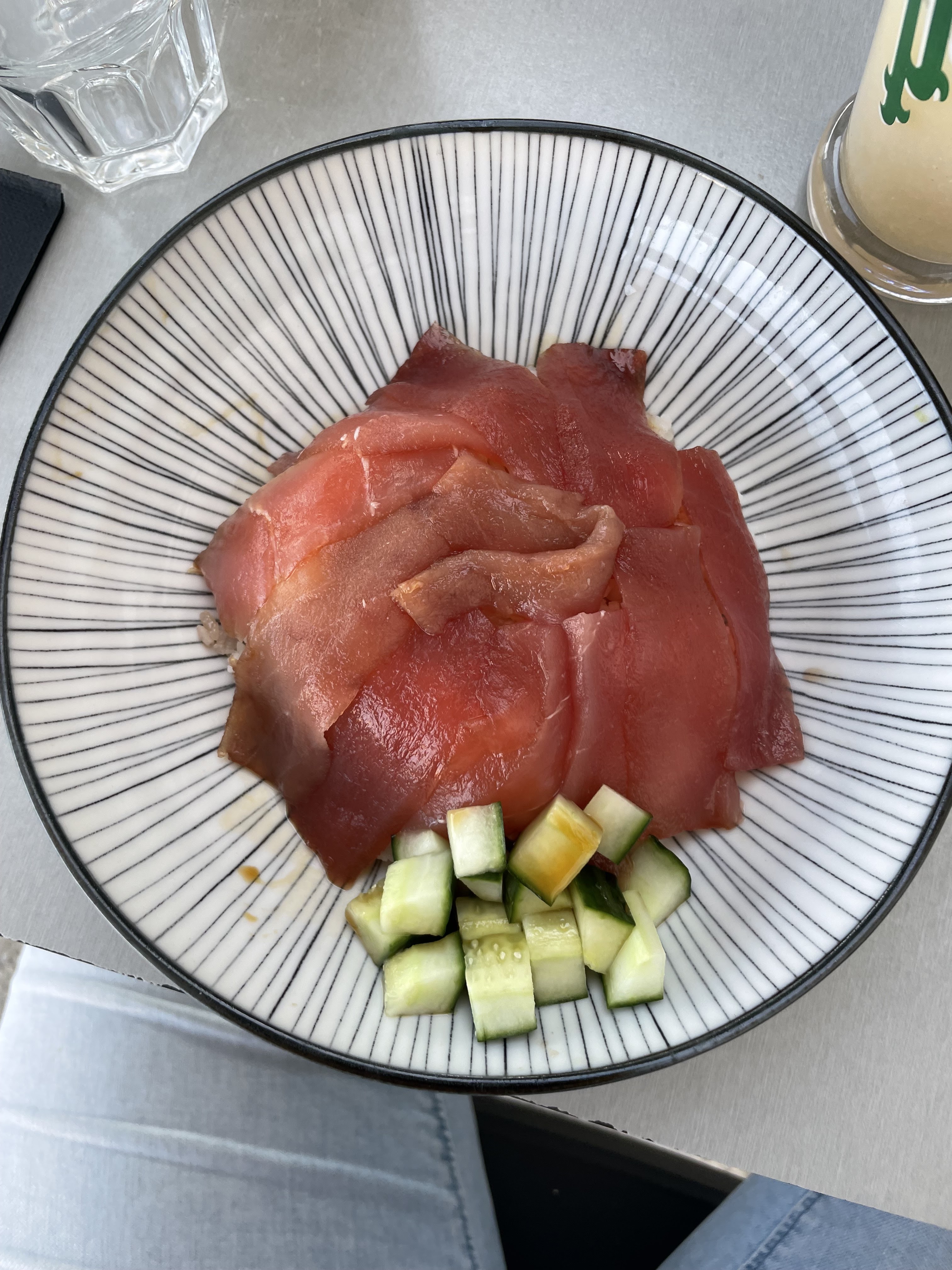 Posté le 16/11/2017 à 09:43"Très déçu. La carte est présentée avec des noms japonais et il faut tout connaître à l'avance ou passer son temps à demander une description. J'aime beaucoup le poisson cru et j'ai commandé un sashimi de thon. Le poisson est servi en quantité correcte pour le prix (13€). Il est de couleur rose pale au lieu d'être rouge foncé : bizarre (voir ma photo). J'ai trouvé qu'il n'avait aucun goût! De plus, les légumes crus taillés en mirepoix miniature obligent à un concours d'habileté pour se saisir d'un cube de 2 mm de côté avec les baguettes... A part ça, service aimable et relativement rapide. Belle vue sur le vieux port."