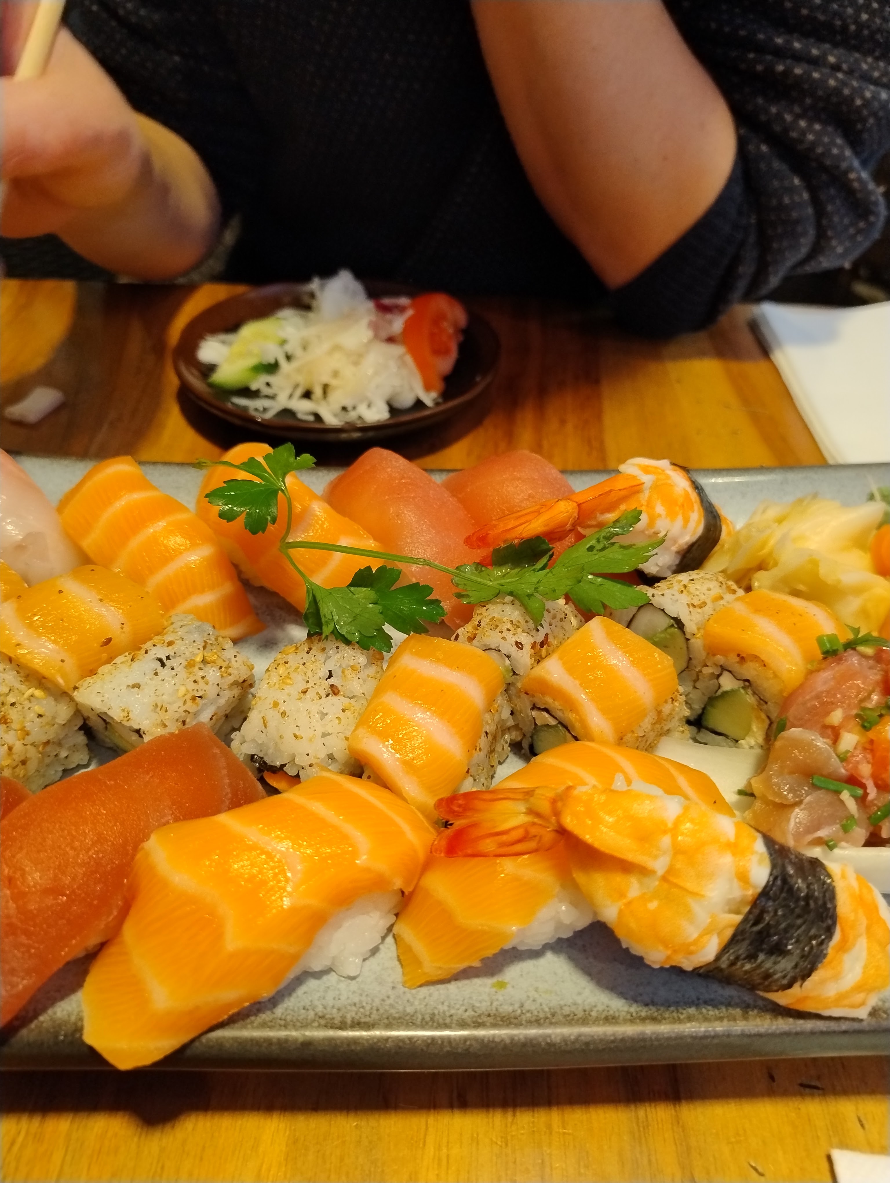 Lieu agréable, personnel sympathique, plateaux de sashimi et sushis excellents (fraicheur du poisson +++), le service était par contre beaucoup trop lent.