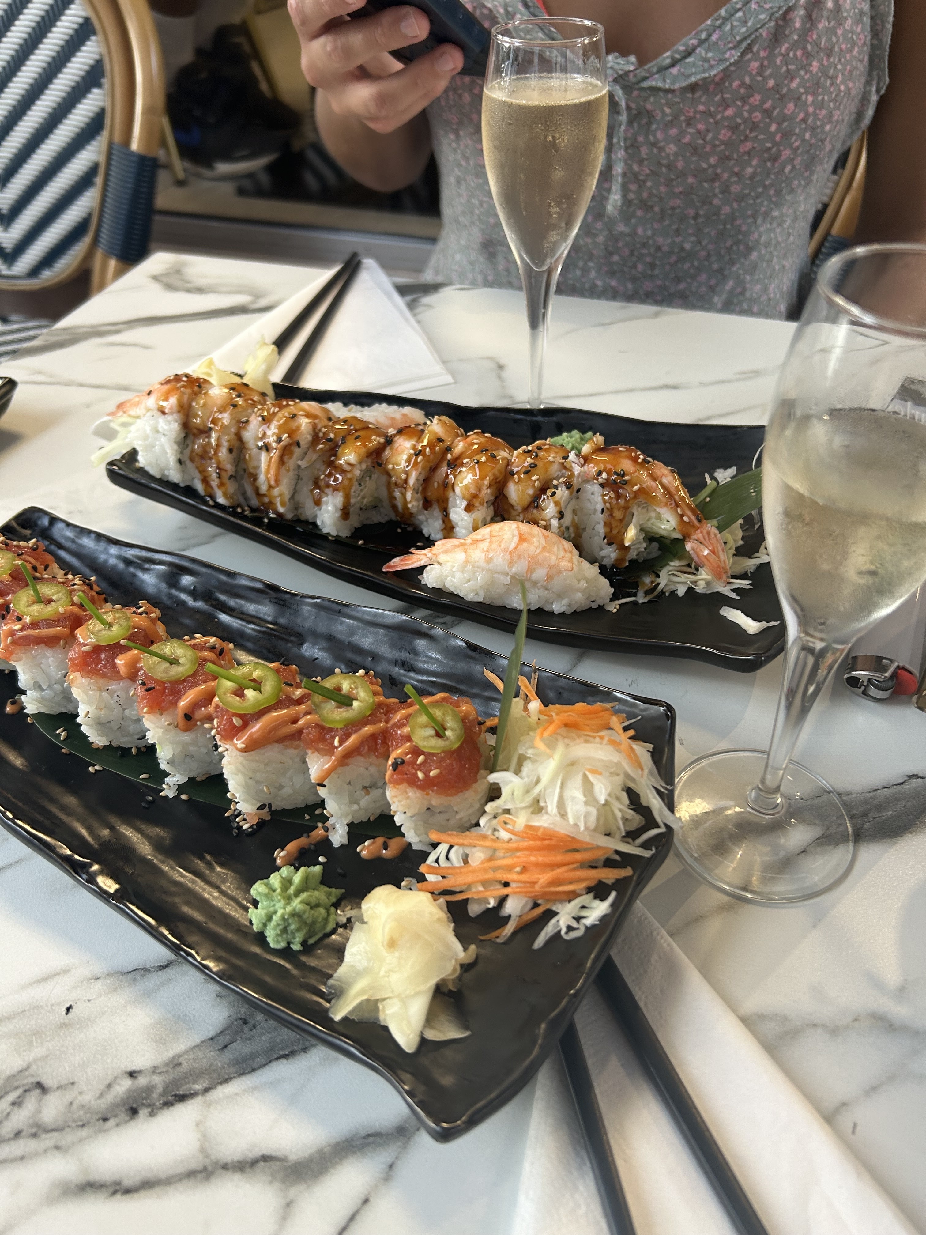 Posté le 24/08/2023 à 21:01"Nous sommes arrivés sans réservations, cependant notre expérience a été parfaite ! Le plats sont de qualité et le plus important le rapport qualité prix pour un sushi est excellent! Je recommande !"