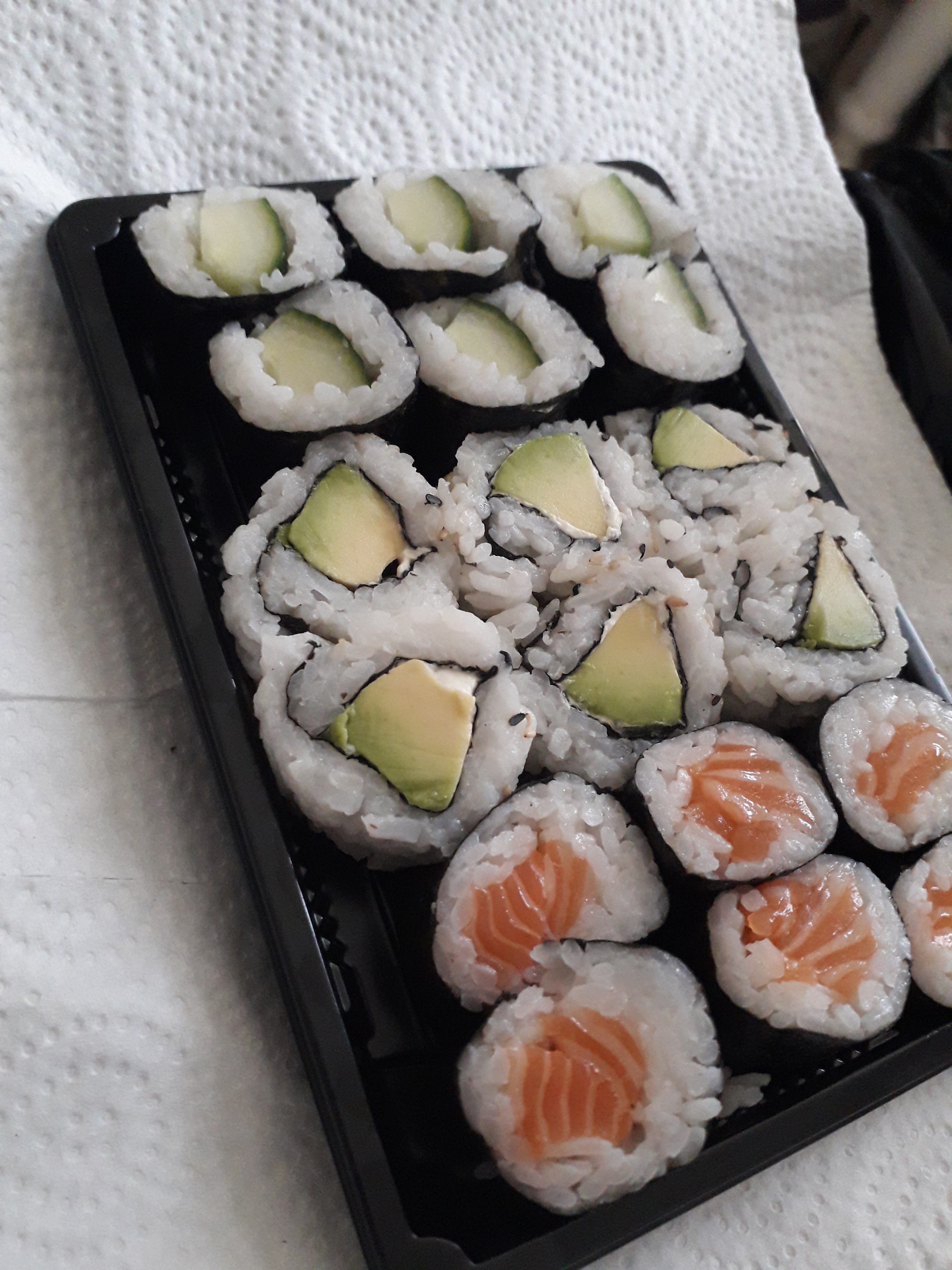 Avocat pas mûr et saumon de mauvaise qualité dans mes makis. Mais repas pas mal quand même.