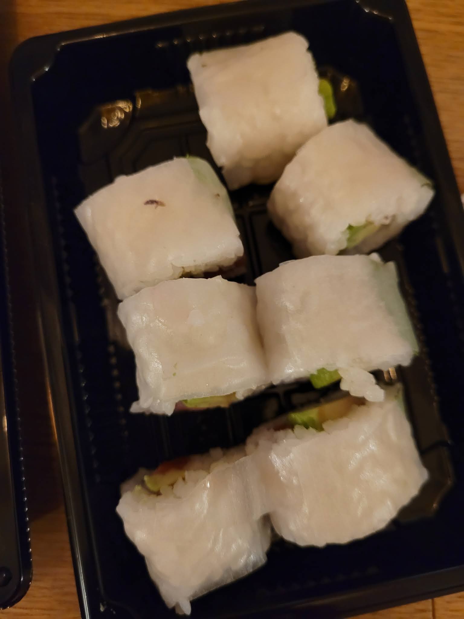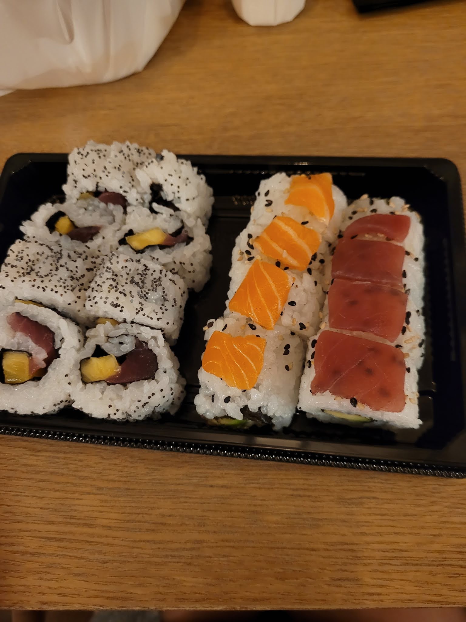 C'était bien... au début ! Et après 2 mois d'ouverture, gros relâchement !! Dernière commande : makis très mal faits, même pas ronds et qui ne se tiennent pas, riz trop sucré trop vinaigré, les Las Vegas Rainbow censés être entourés de saumon et de thon étaient de simples California avec un pauvre morceau de poisson posé dessus (pour 7,50€ on se sent un peu lésé), la laitue des makis printemps était tout simplement inexistante, avec une feuille de menthe présente seulement dans 1 maki sur 3, et la soupe miso a complètement traversé le bol en papier de très mauvaise qualité, résultat il n'en restait que la moitié, l'autre moitié se trouvant au fond du sac plastique !! Bref, grosse déception...