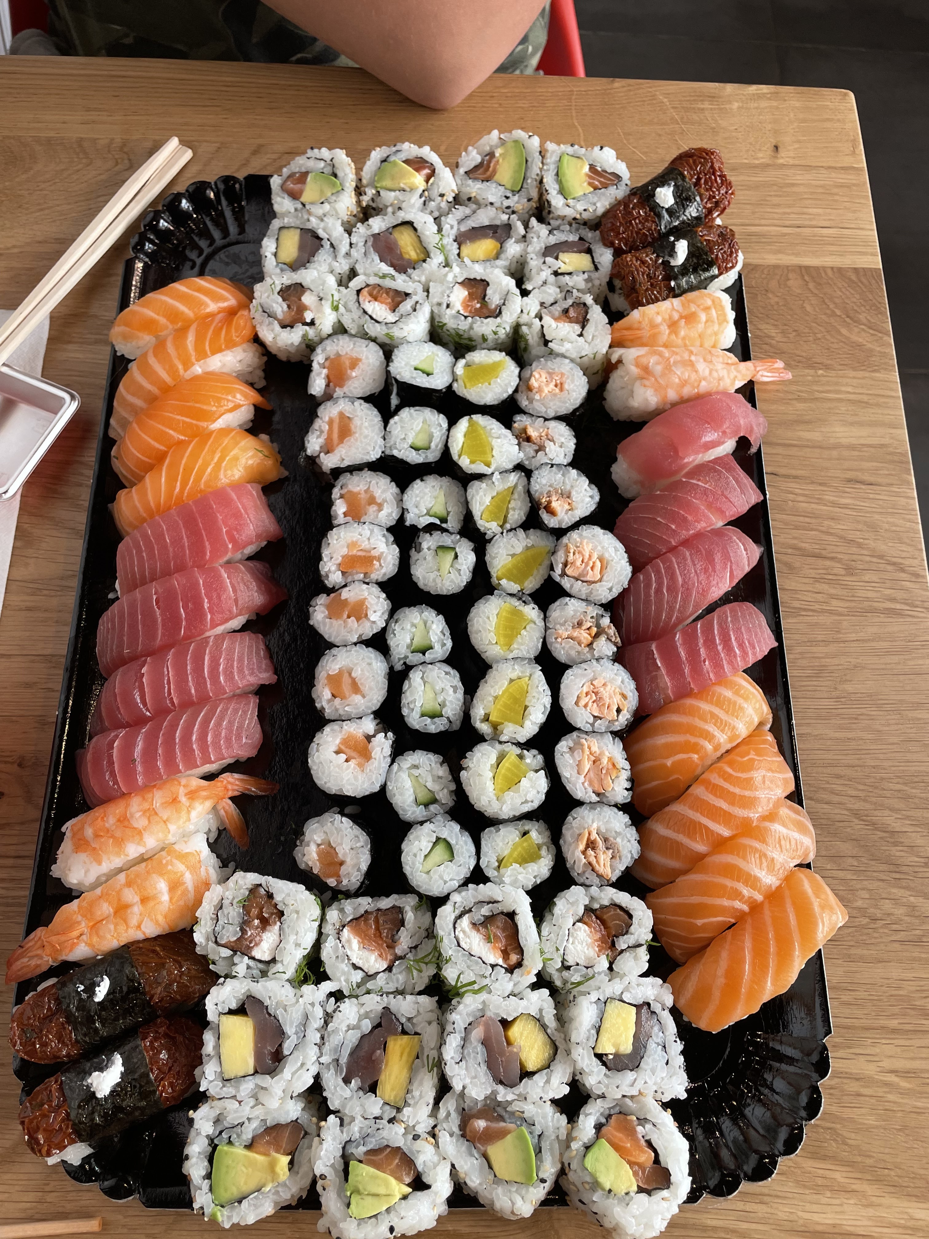 des portions généreuses pour un prix très raisonnable. Cependant faites attention à la confection de vos makis et à l'assaisonnement du riz. Parfois trop vinaigré les grains de riz se désolidarisent et les makis sont ratés... Sinon poisson frais. Recettes inventives