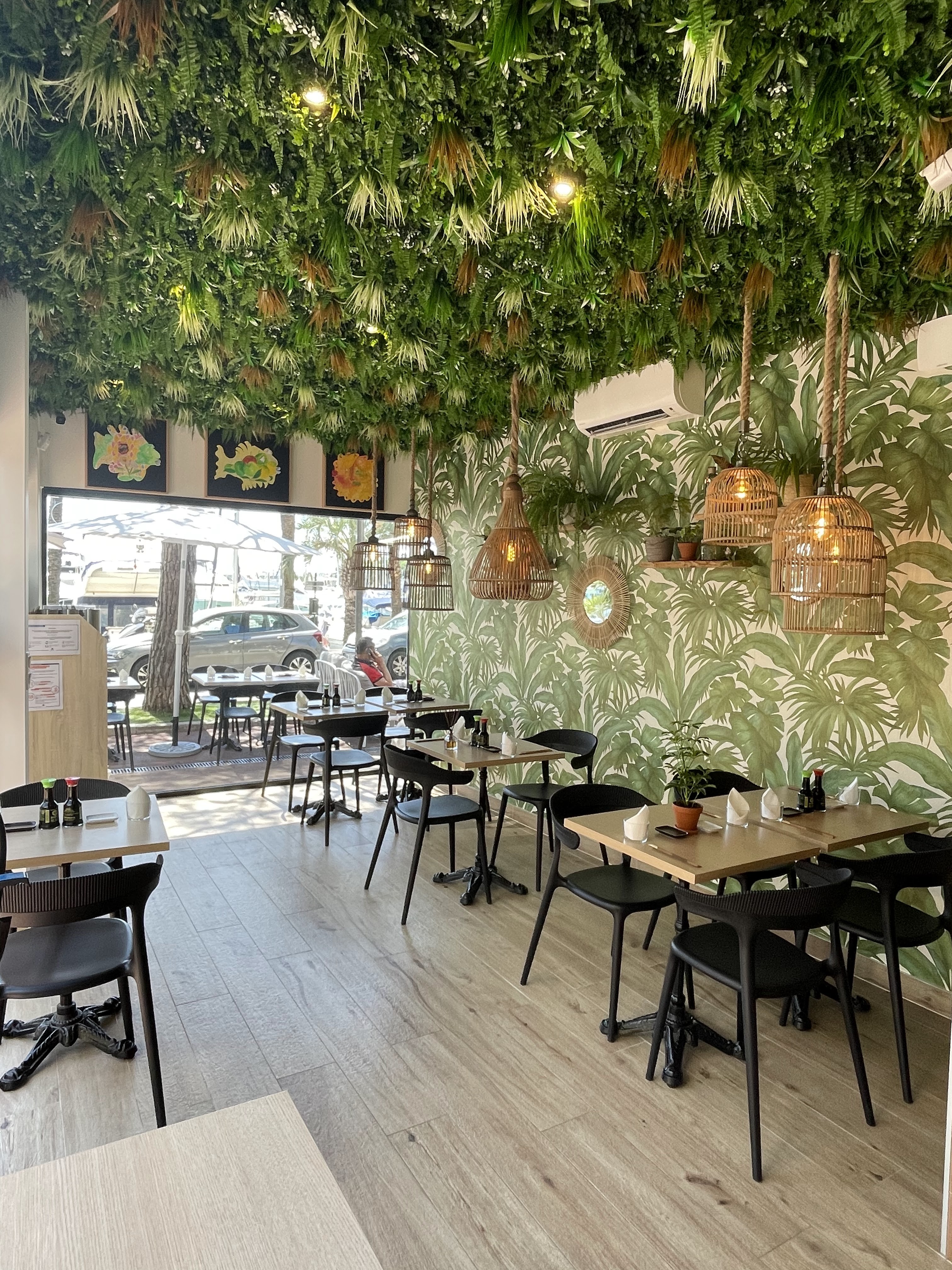 Je viens de déjeuner aujourd’hui au Mas sushi de la marina de Villeneuve Loubet. C’est un joli petit restaurant à la déco moderne et trendy. Pour ma part j’ai pris le pokebowl falafel mangue qui était excellent ! J’ai juste un petit bémol concernant l’absence d’assaisonnement un peu original outre les sauces soja salée ou sucrée proposées (peut-être aurais-je dû demander ? Car si il y avait le choix je ne l’ai pas vu sur la carte mais à la commande on ne m’a pas demandé non plus …) toujours est-il que c’est très bon et je reviendrai à l’occasion ou en livraison ..: je recommande ! Ma fille a pris le fresh burrito au saumon qu’elle m’a dit délicieux! Bravo