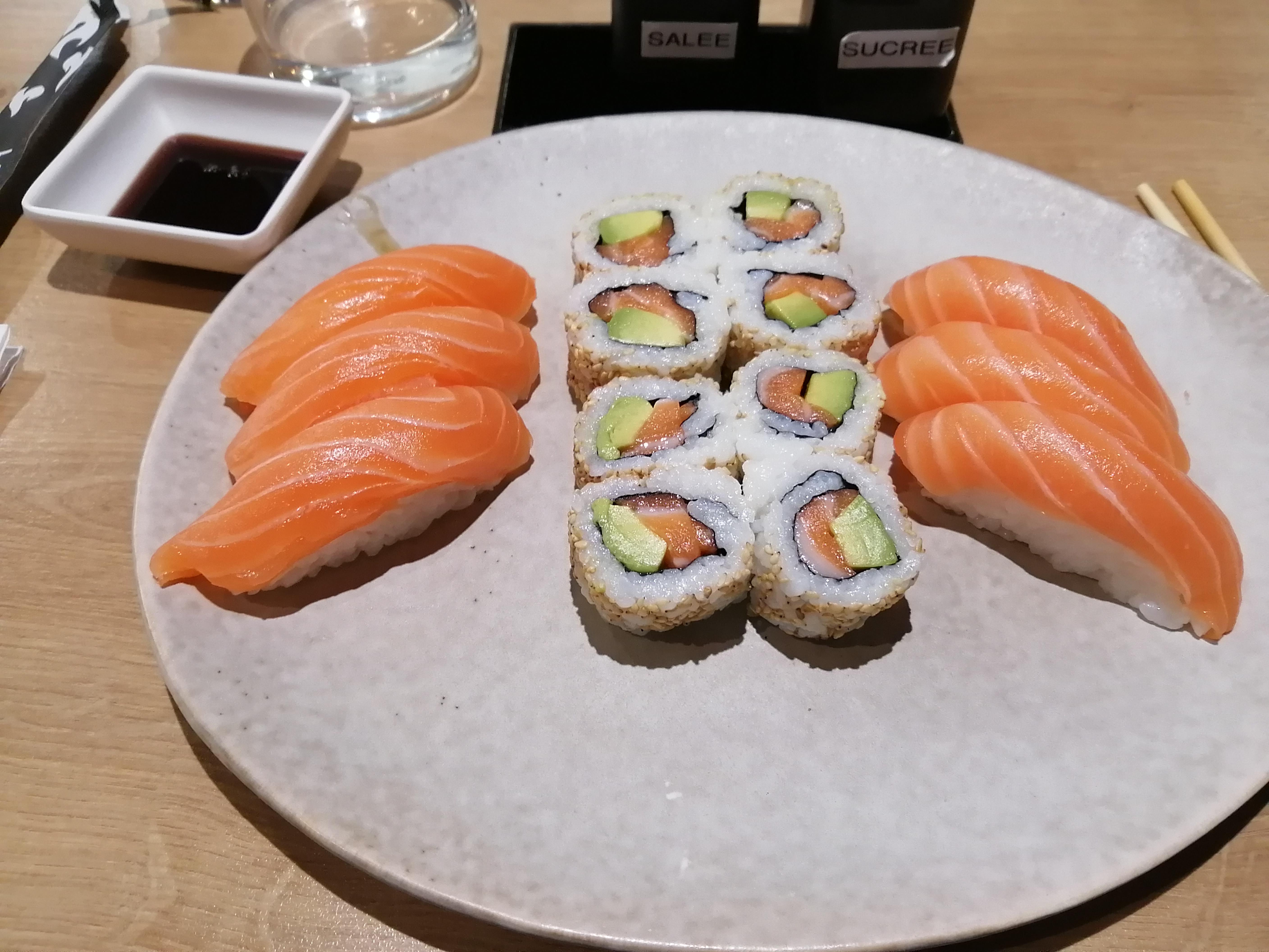 Posté le 27/02/2020 à 12:38"Commande salade d'algues + plat sushis. La salade m'est servie après 10 min. mais il faut attendre plus de 45 min pour le plat de sushis alors que tous les couples autour de moi ont été servi depuis longtemps ! Voir défiler les livreurs (les commandes passent-elles avant les clients du restaurant ?) et attendre seule à ma table en ayant l'impression d'être oubliée n'est pas une bonne expérience. Merci d'être particulièrement attentifs avec les clients solo pour qui le temps est bien long... Question sushis, rien à dire, ils étaient frais et délicieux."