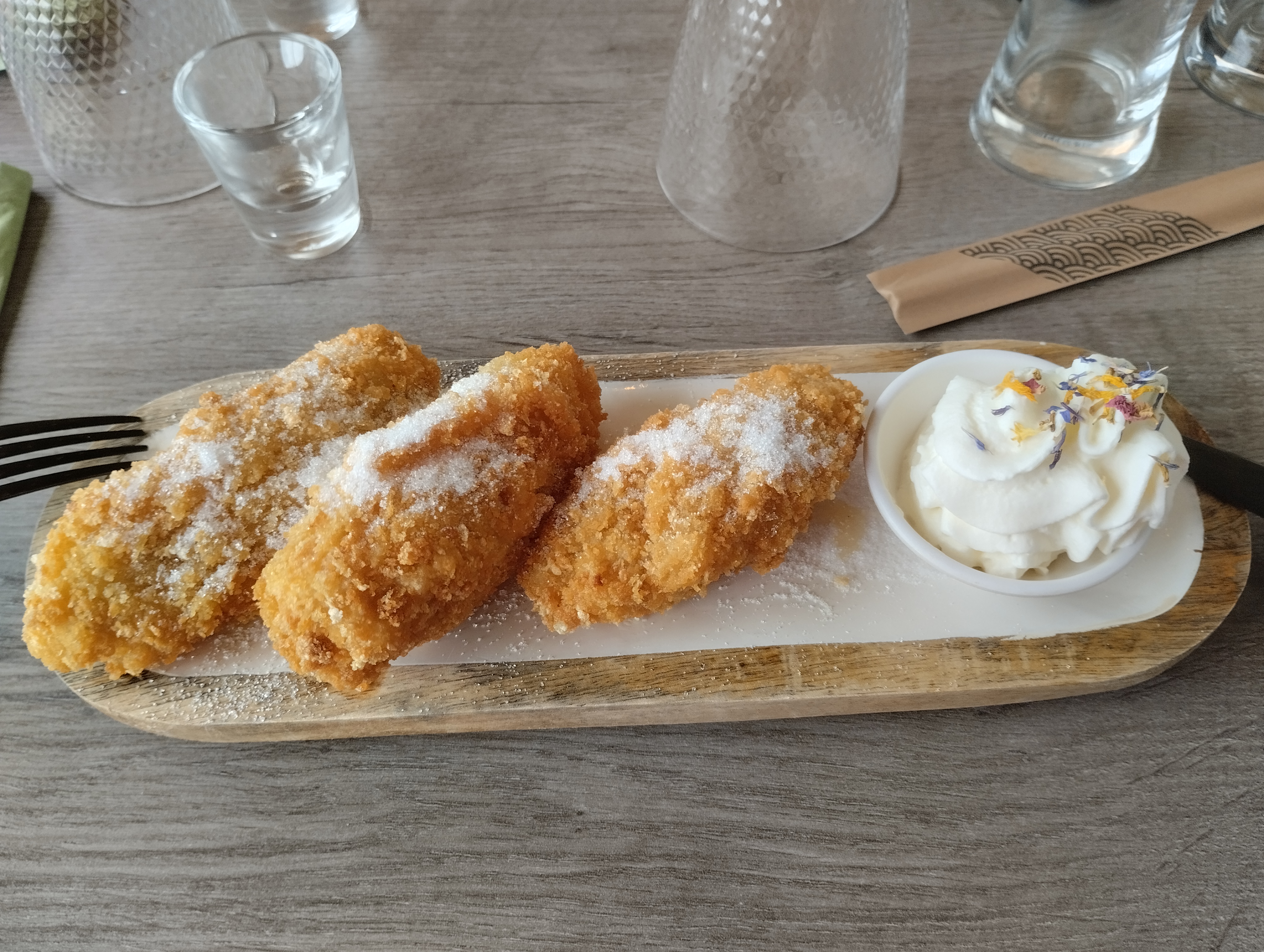 Posté le 04/09/2023 à 20:30"Petit resto très sympa où la cuisine est faite avec des produits frais. On s'est régalé avec le plat du jour crevettes, gambas au curry et légumes avec des nouilles et les beignets aux pommes et à la banane. Accueil chaleureux et bonne ambiance. On s'y sent à la maison. On recommande à 100%. A bientôt."