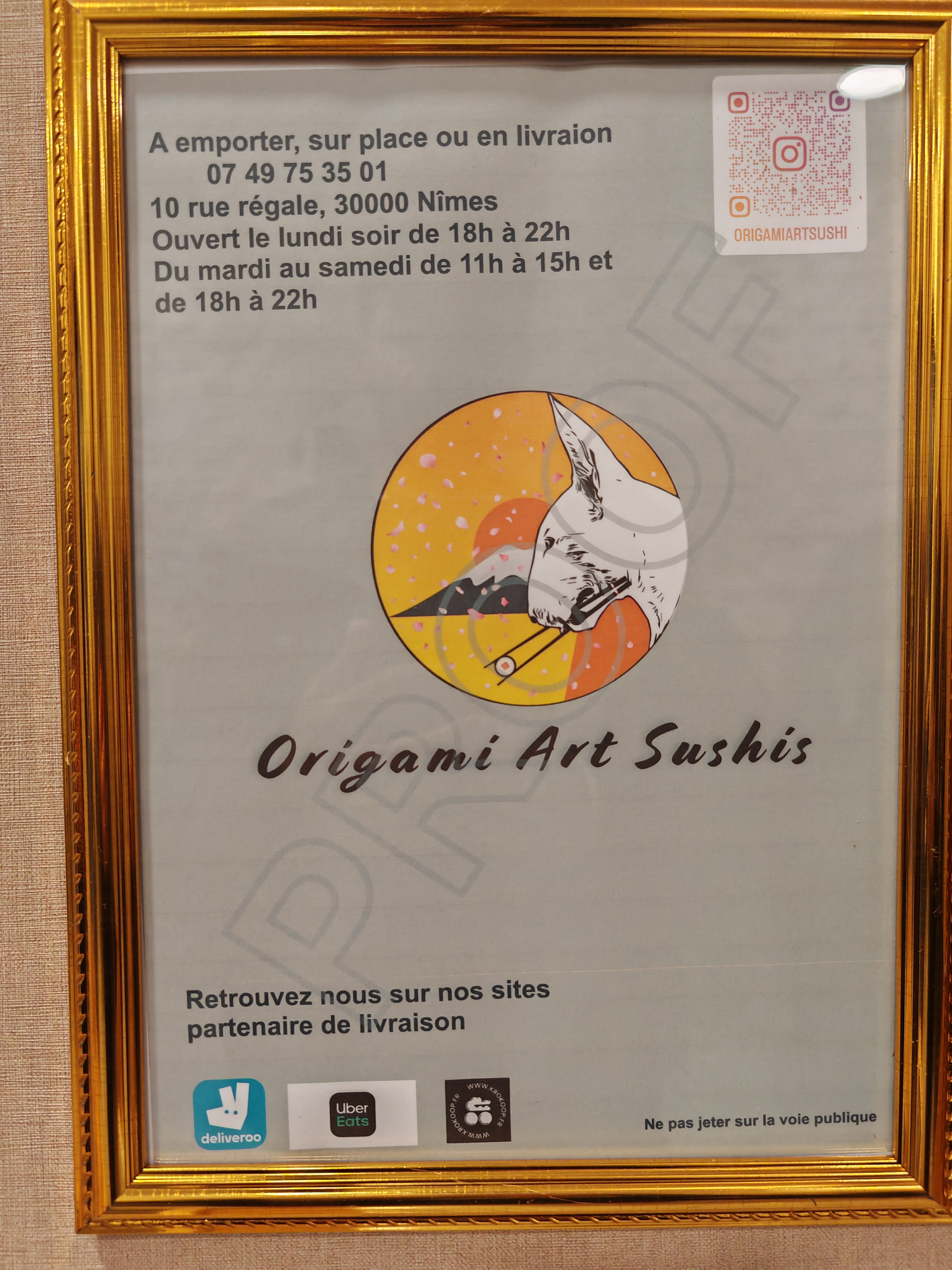 Découvrez toutes les informations concernant Restaurant de sushis Origami Art Sushis qui se situe au 10 Rue Régale, 30000 Nîmes (30). Cette fiche inclut les photos, les horaires d'ouverture, l'adresse, le numéro de téléphone et les avis des clients.
