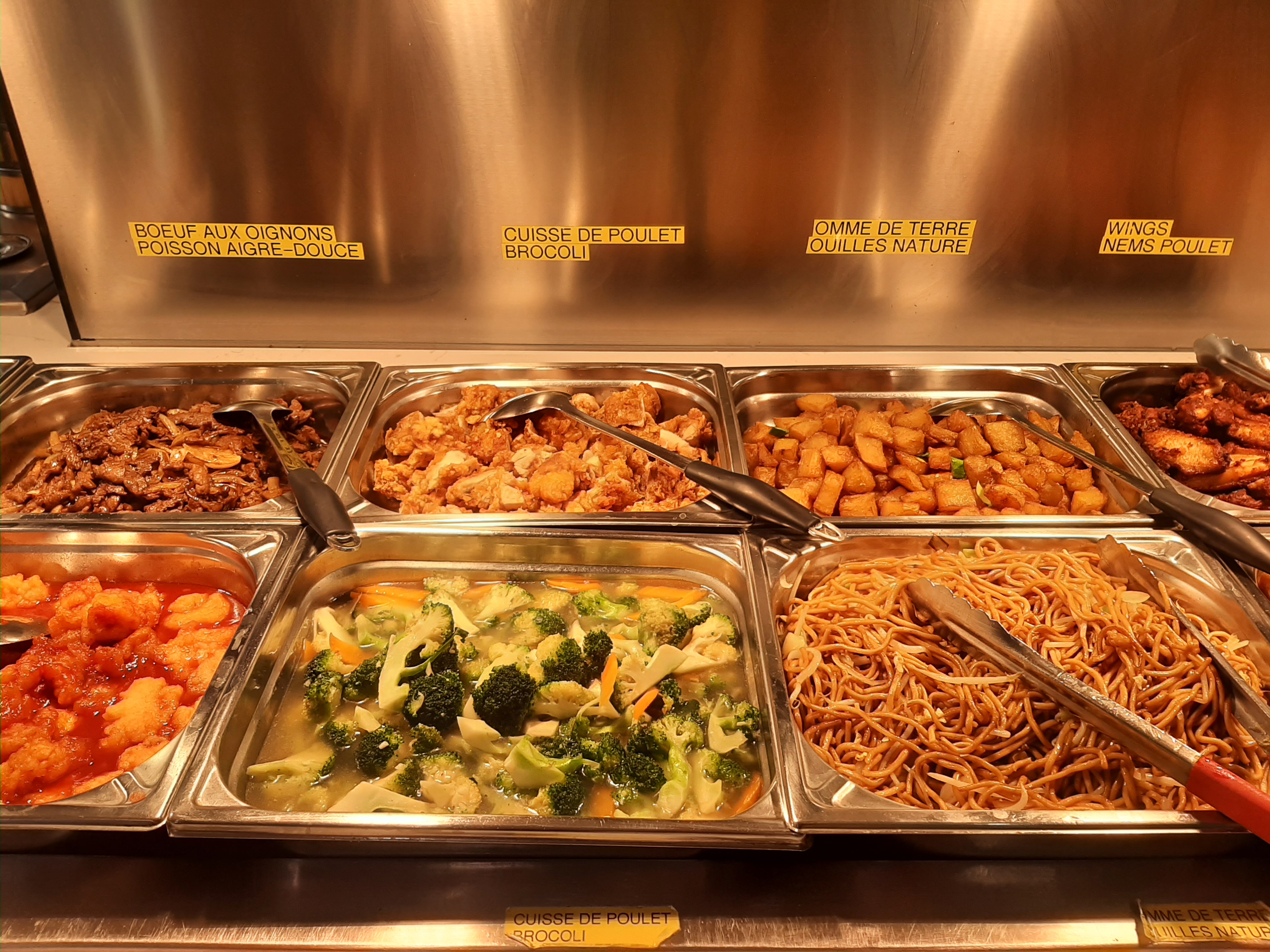 Posté le 22/10/2019 à 16:46"Les + : Le patron est charmant, très souriant et prend le temps d'expliquer le fonctionnement. Les sushis sont bons et faits sur demande. Le riz cantonnais est bon. Beaucoup de choix au buffet. Buffet de dessert plus varié que dans les autres restaurants asiatiques. Les - : Plutôt déçu des fritures qui ont peu de goût et sont très grasses (tempuras et nems) et des brochettes qui ont un goût un peu bizarre. Le restaurant se remplit assez vite et il y a même la queue donc il faut venir à l'ouverture. Ça serait aussi sympa rajouter des sauces autres que soja pour les raviolis, nems, beignets etc. Globalement je trouve le prix du soir trop élevé vu la qualité (16€80). Pour le midi c'est déjà plus rentable."