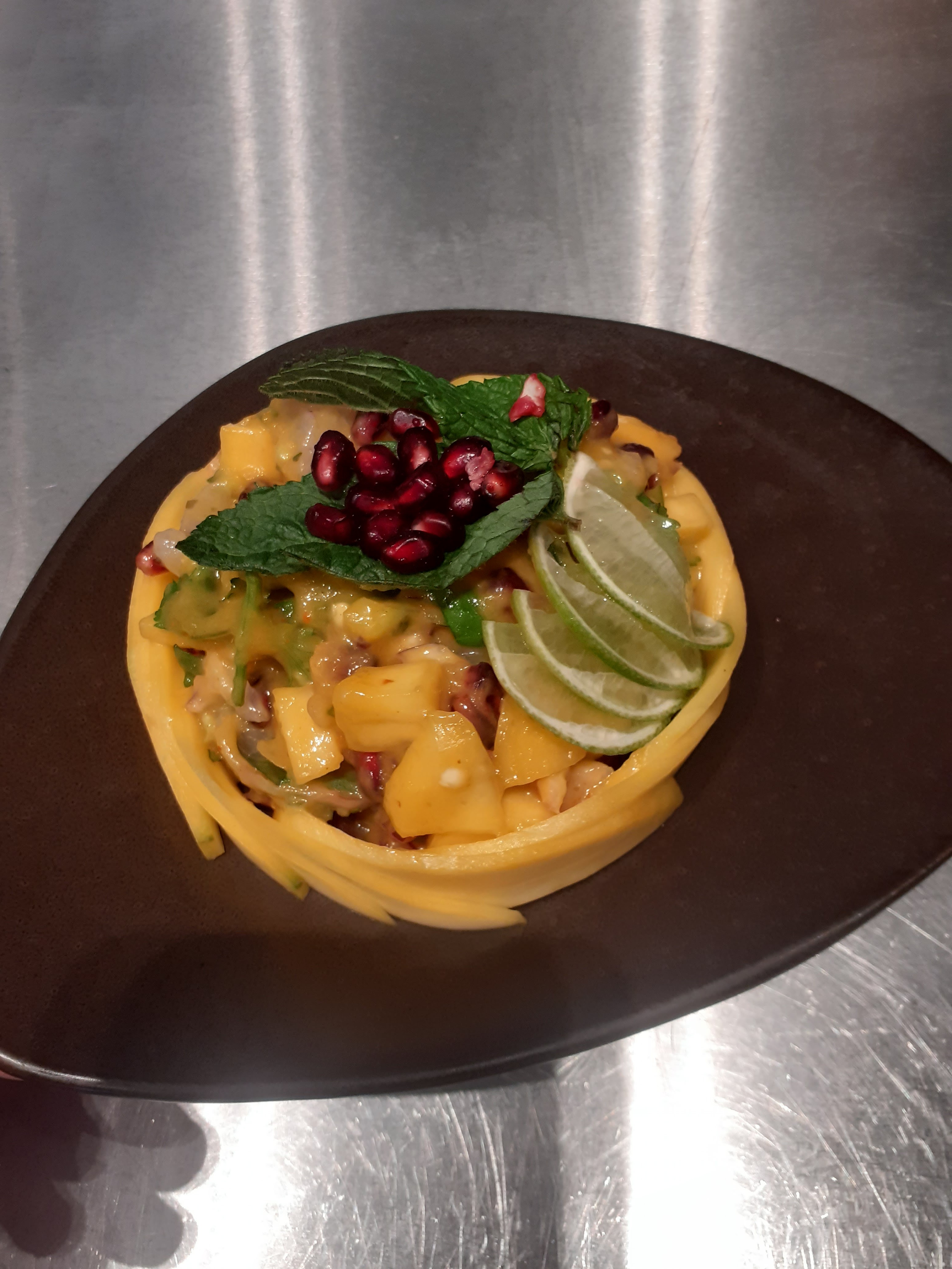 Poké bowl Bœuf Le riz pas cuit, 2 malheureux bouts de viande durs, de la coriandre fané et beaucoup de tiges sans les feuilles, de la mangue pas mûr et encore avec du vert … une sauce fourni avec juste immonde qui doit pas dater d’aujourd’hui … des oignons rouges couper à l’arrache avec le cœur qui est indigeste. Les légumes sans goûts et l’ensemble pas savoureux En résumé une catastrophe