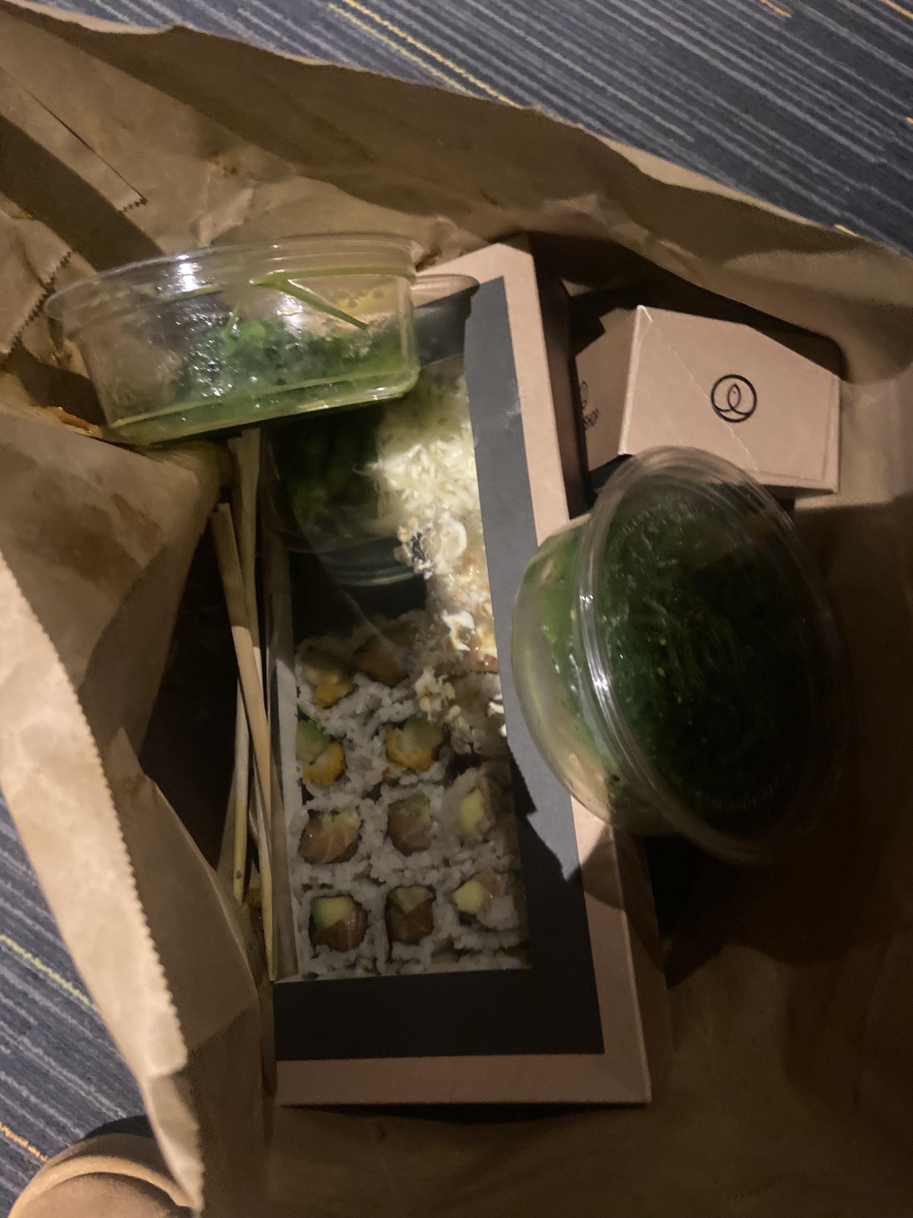 Bonjour, nous vous remercions pour votre commentaire et nous sommes désolés d'apprendre cela. La commande ayant été passée via une plateforme partenaire, il convient de vous rapprocher du service client de cette plateforme pour vous aider à trouver une solution. A bientôt, l'équipe Sushi Shop :)