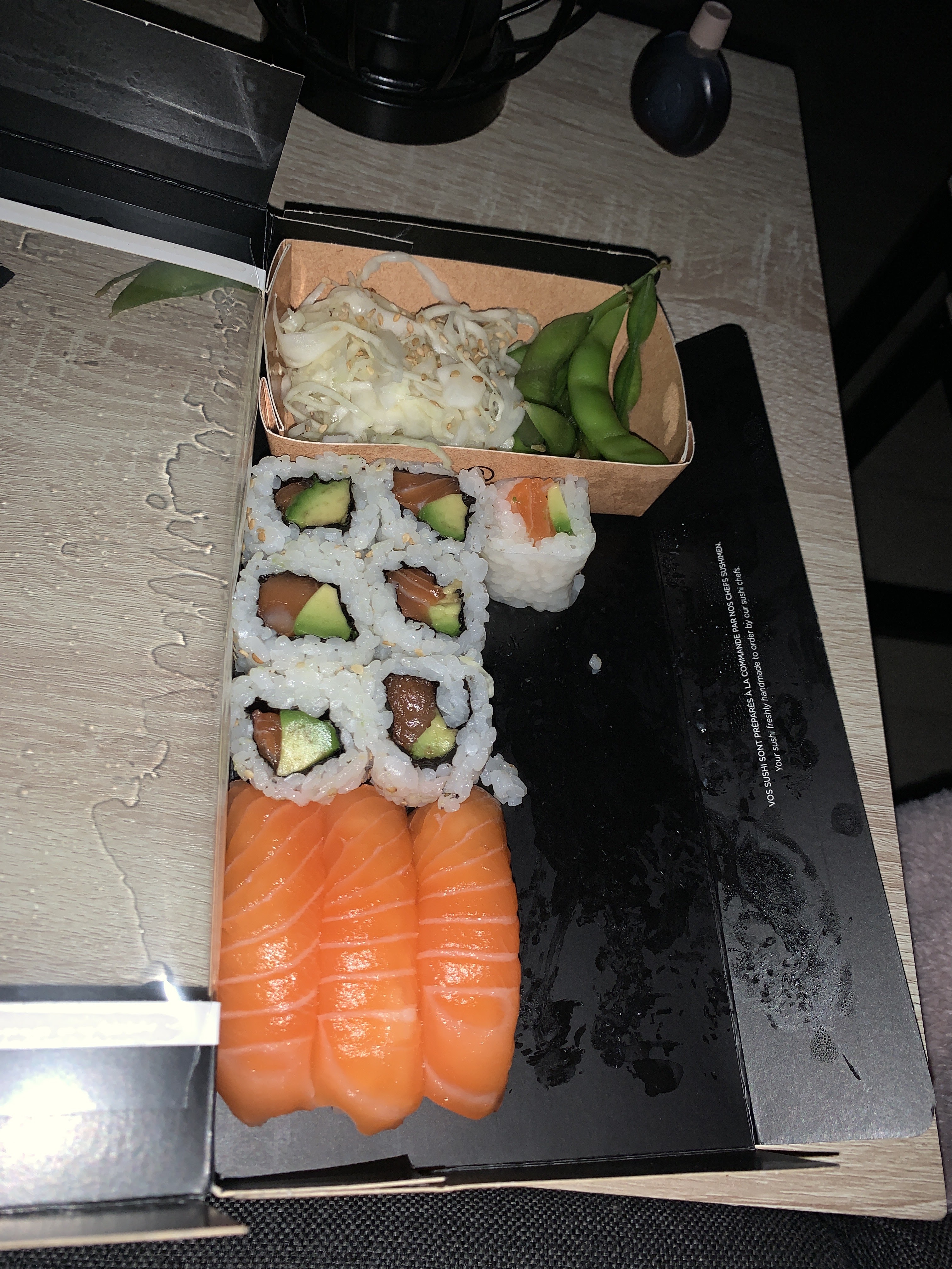 Posté le 09/11/2017 à 22:00"Première commande dans ce sushi shop 30 minutes de retard, soupes miso froides, pas de cuillère, manque un bol de riz pourtant bien payé et marqué sur la facture. Les saveurs ne ressemblent pas à celles des boutiques de la même franchise de Paris, Lyon et Marseille Chez qui je commande souvent. La seule proposition a été de me faire un geste commercial sur la prochaine commande. Je ne souhaite plus commander chez eux. Dans les autres sushi shop, pour tous retards, les clients ont un bon de 10€ d’achat valable dans tous les sushi shop. Pas avec la boutique du vieux Lille. La demoiselle au téléphone est restée polie et compréhensive malgré tout."