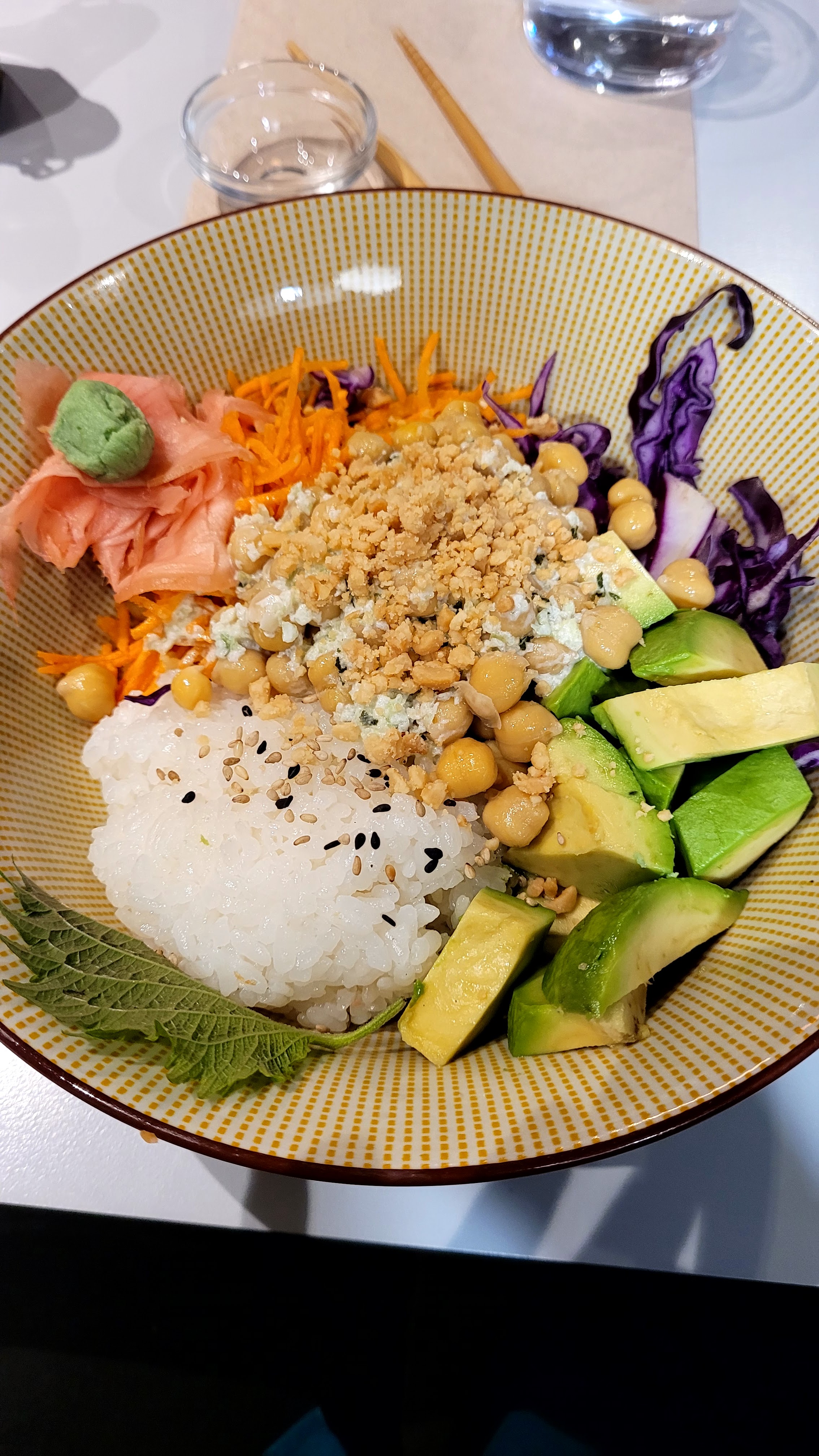 Le décor est très joli, il y a de la place, on voit faire les cuisiniers sans qu'ils soient trop exposés. Nous sommes venus un soir en famille avec un enfant. L'attente a été bien trop longue, un des plats a été oublié, même si il a été apporté avec un petit plus. Les produits issues de la congélation sont écrits, mais cest bien dommage qu'il y en ait, et je me demande ce qui justifie le prix des yakitori (issus de la congélation et à 2 50€ pièce). Le restaurant semble spécialisé en poke bowls, si vous venez pour autre chose ce n'est pas la peine. J'ai cependant apprécié l'adaptabilité du personnel à changer un plat en présence d'allergènes. Bon ils n'ont pas pu faire des white kappa maki, dommage.